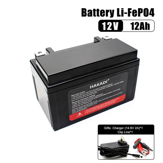 Batería recargable HAKADI Lifepo4 de 12 V y 12 A, ion de litio, 4000 ciclos, alta seguridad para exteriores.